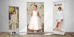 - Nuestro roll up de 85 × 200 cm es perfecto para dar la bienvenida: lona de alta calidad, soporte retráctil y diseño infantil o elegante, según tu estilo.